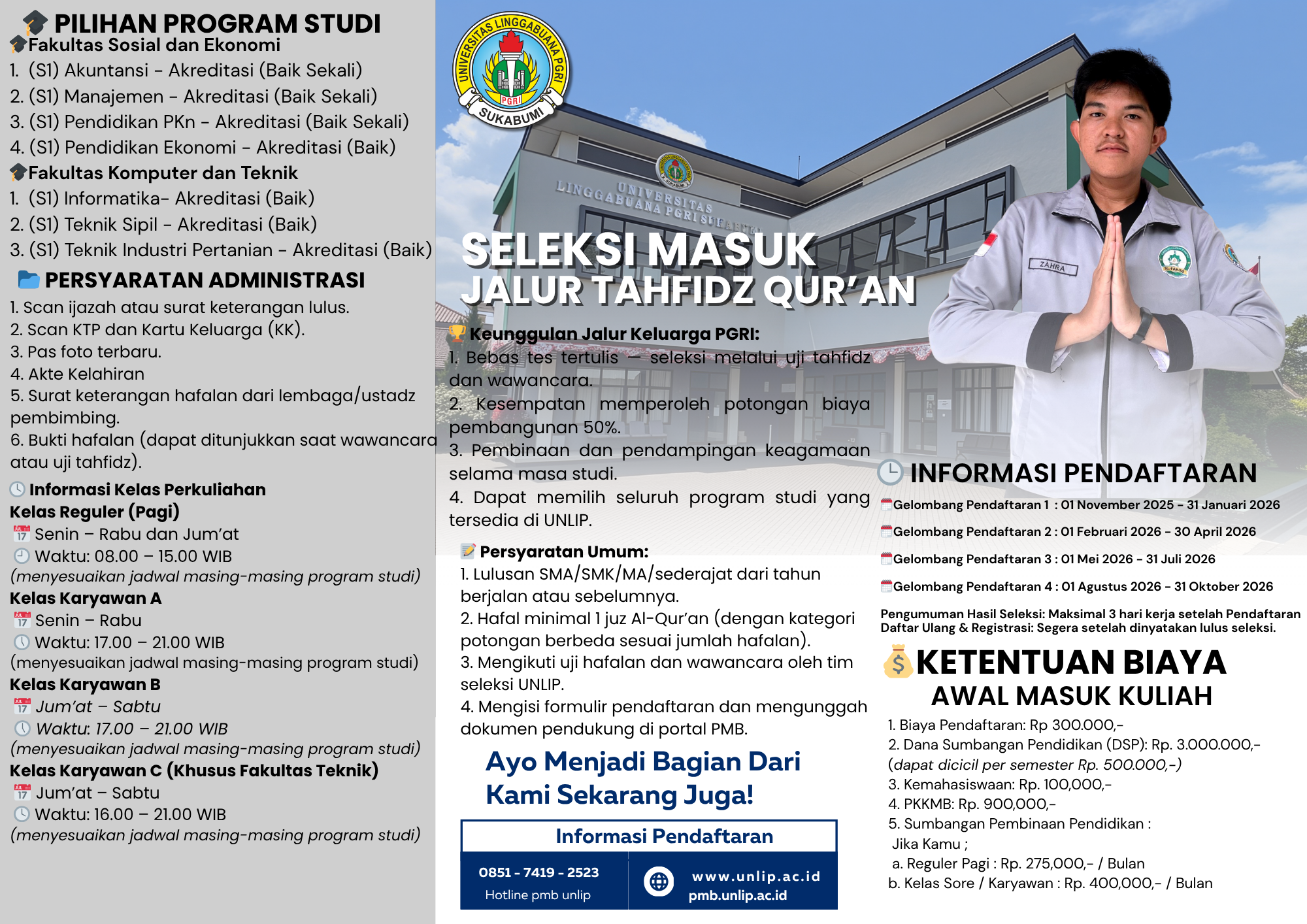 Wujudkan cita-citamu menjadi sarjana berkarakter Qur’ani bersama Universitas Linggabuana PGRI Sukabumi.